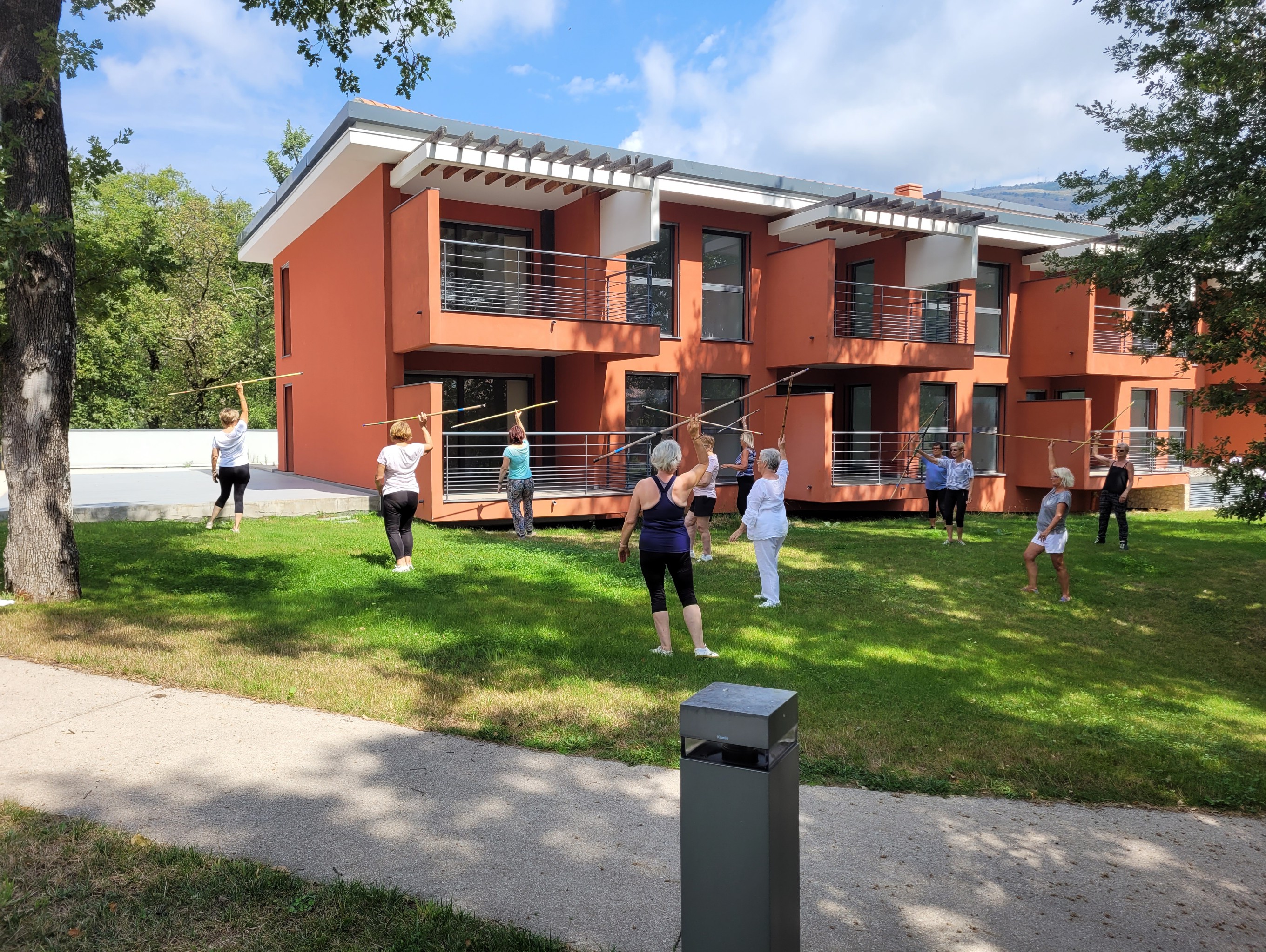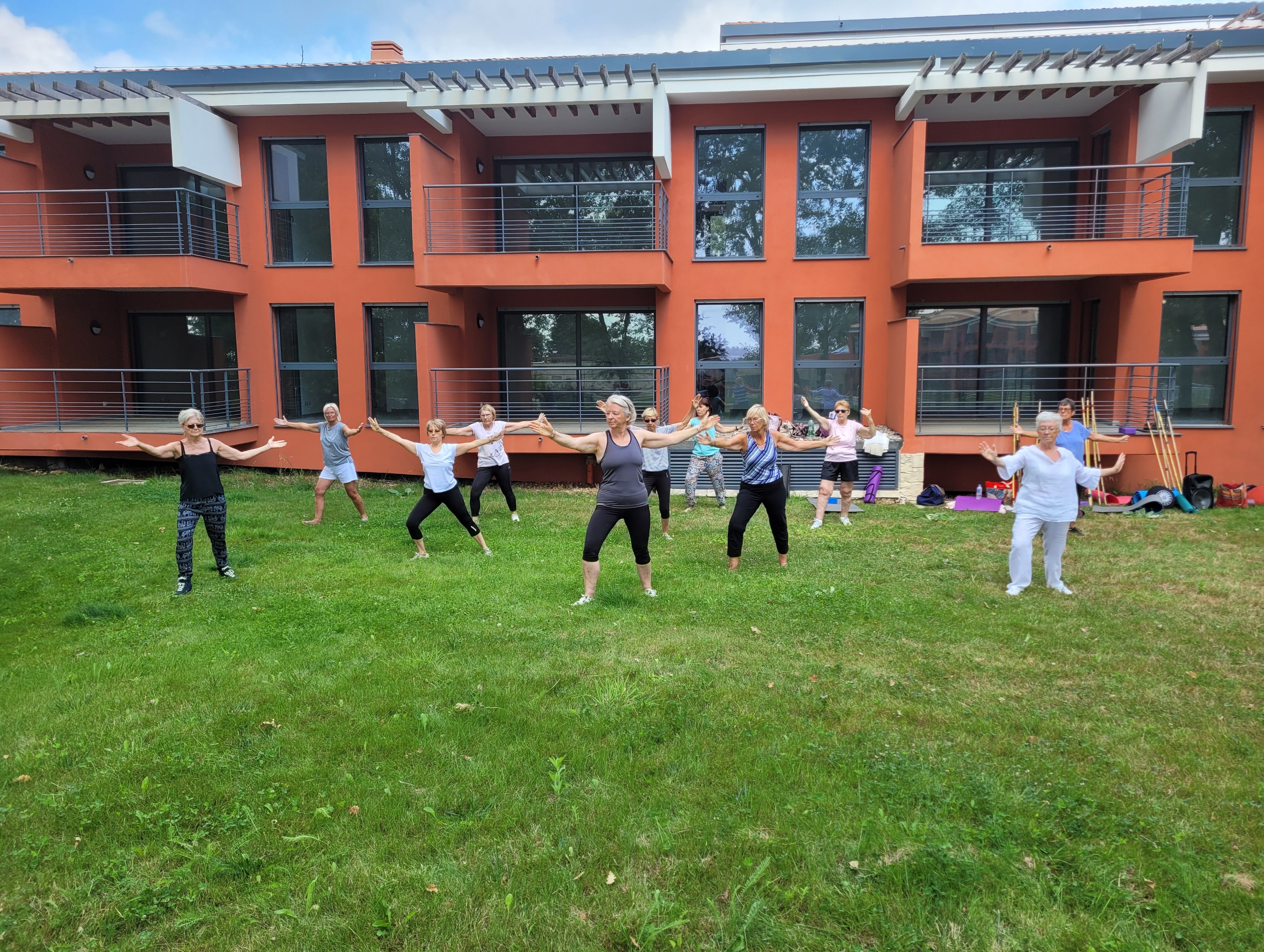 Samedi 31 juillet, une journée au Golf du Claux Amic a été organisée pour clôturer la saison 2020-2021. Au programme une maxi séance animée par Michèle, gym douce pour s’échauffer, puis initiation au tai chi chuan au bâton avec apprentissage d’un petit enchainement, tai chi à main nu pour revenir au calme, quelques mouvements de yoga et pour finir avec un instant de relaxation et méditation assise.